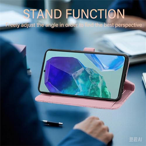 Ephoou Capa carteira para Xiaomi Redmi A5 com porta-cartões e bolso com zíper, capa flip de couro PU à prova de choque com alça de pulso e suporte e fecho magnético para Redmi A5 4G SZY-rosa