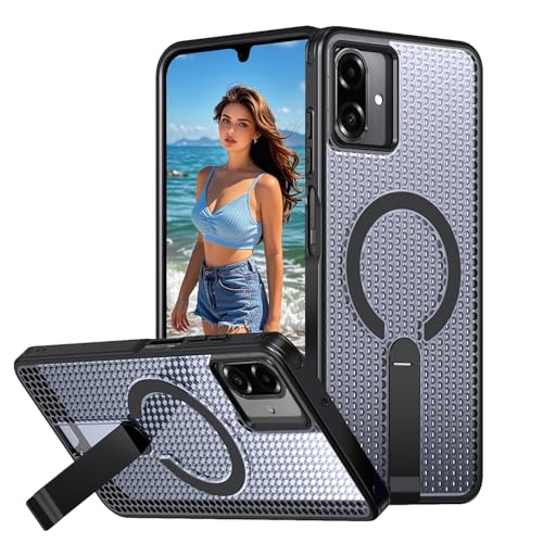Ephoou Capa para Samsung Galaxy A07 4G dissipação magnética de calor com suporte, compatível com MagSafe – Capa de resfriamento à prova de choque de favo de mel respirável de malha para Samsung Galaxy