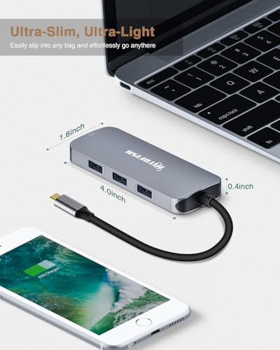 - [Design elegante, estrutura premium e compatibilidade com placa] É feito de gabinete de alumínio de grau aeronáutico fino e elegante que o torna um complemento perfeito para o visual e a sensação do seu profissional em cinza espacial. Um hub de expansão USB-C ideal para Apple MacBook, Apple MacBook Pro, Apple I Mac/I Mac Pro (21,5 polegadas, 27 polegadas), Google Chromebook Pixel, Dell, como EUA, HP, Lenovo e muitos outros laptops tipo C.