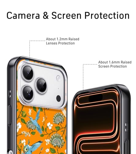 Especificação: FEWGEY Capa de telefone para iPhone 17 Pro Max compatível com Magsafe, design de pássaros fofos comem árvores frutíferas, à prova de choque, proteção resistente para mulheres, homens, meninas, meninos