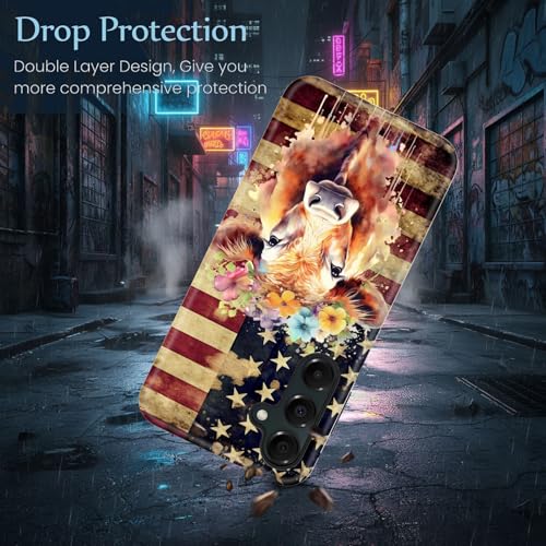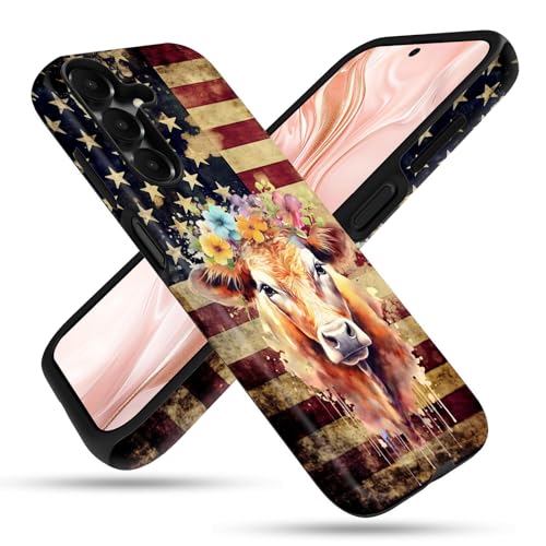 FGDRFGRW Capa projetada para Samsung Galaxy A17 5G, 2 camadas TPU + PC, capa protetora à prova de choque – bandeira americana vaca