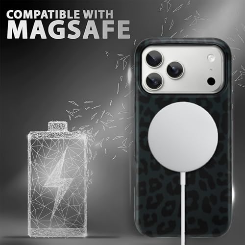 Especificação: Fiyart Capa magnética para iPhone 17 Pro [compatível com MagSafe], linda moda preta estampa de leopardo capa protetora fosca para mulheres e meninas – preta