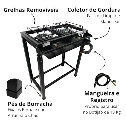 - SEGURANÇA: Equipado com mangueira e registro de alta pressão, garantindo conexão segura e controle preciso do gás