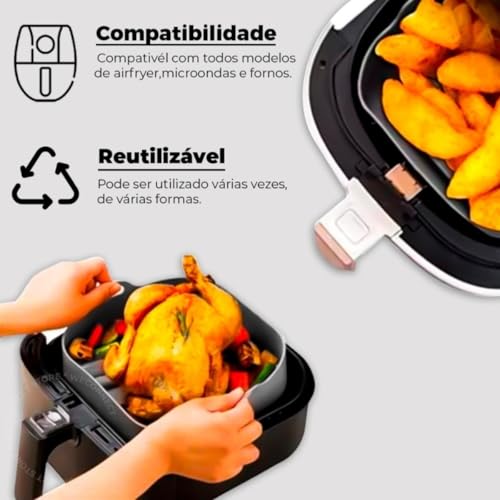 - DESIGN VERSÁTIL: Forma quadrada de silicone projetada especificamente para air fryer, com alças laterais para fácil manuseio e remoção segura
