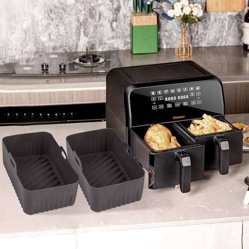 - Forros para fritadeira a ar, tapete de silicone para assar, resistente ao calor e antiderrapante, 2 unidades, cinza