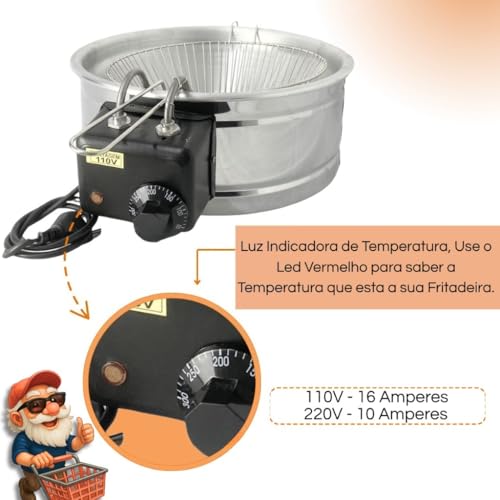 Especificação: Fritadeira Elétrica de pastel Tacho 5 Litros Redonda Inox 110v e 220v Fritura batata Pastelaria(220v)