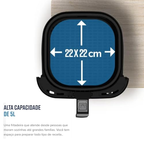 - Com o cesto de 5L é ideal para preparar refeições para toda a família. Uma fritadeira que atende desde pessoas que moram sozinhas até grandes famílias. Você tem espaço para preparar todo tipo de receita