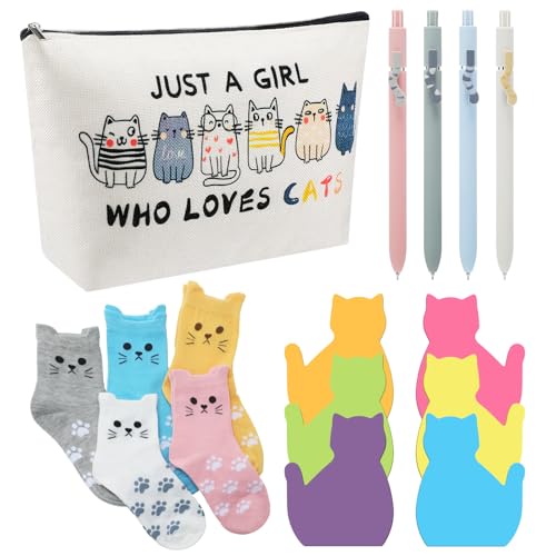 - Conjunto de presente definitivo para amantes de gatos: delicie-se com este conjunto de presente habilmente selecionado, adequado para amantes de gatos e mulheres; com 1 bolsa de cosméticos com tema de gato, 5 pares de meias femininas, 4 canetas pretas, 180 folhas de notas adesivas de gato e presentes adoráveis para gatos, este conjunto é o melhor presente para qualquer ocasião; compartilhe um sorriso com a família, amigos ou colegas