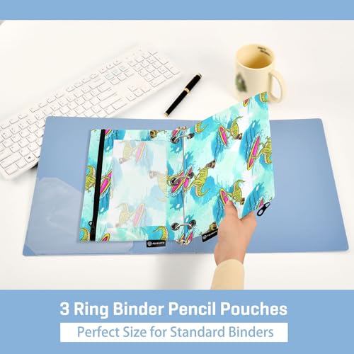 GAIGEO Fichário legal Tyrannosaurus Rex Ocean Animal 3 anéis, estojo para lápis, fichário com zíper, fichário escolar com zíper, bolsos transparentes para meninos 25 x 18 cm, 2 pacotes