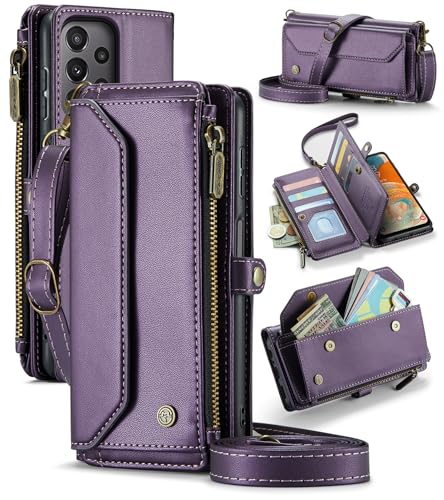 GooodiDEAR Capa carteira para Samsung Galaxy A23 com proteção RFID, compartimentos para cartões, suporte, alça destacável – Capa flip transversal de couro PU à prova de choque Galaxy A23, roxa