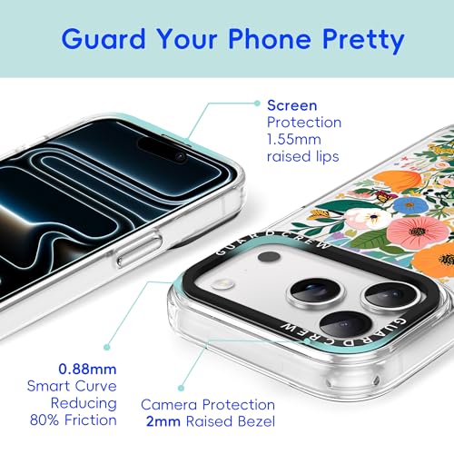 GuardCrew Capa para iPhone 17 Pro Max, [proteção contra quedas de grau militar de 3,9 m à prova de colisão] [anti-descascar] Capa de telefone floral fina à...