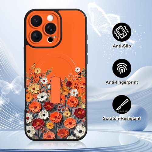 Gukalong Capa de telefone magnética para iPhone 16 Pro de 6,3 polegadas (compatível com MagSafe) capa de telefone com flores florais laranja com suporte de...