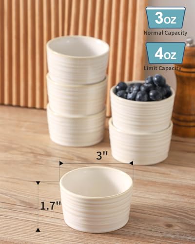 Hasense Conjunto de 6 tigelas de cerâmica para ramekins de 118 ml, mini assadeiras para pudim de suflê, molho de servir, creme, sorvete, branco com infusão de argila
