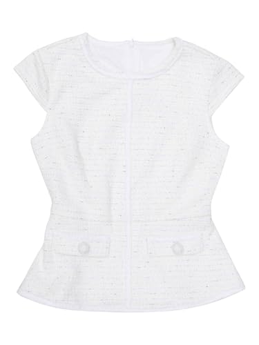 - Mantenha seu visual profissional e elegante nesta elegante blusa da Hobemty, com tecido de tweed, gola redonda, manga cavada, design peplum, decoração de botão, zíper nas costas, forro completo e painel de acabamento de tweed.