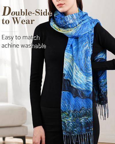 - ESTAMPADA ARTE DE DUPLO LADO: Nosso design de padrão de cachecol para mulheres é distinto, inspirando-se na arte de Van Gogh. O padrão é impresso vividamente em ambos os lados do cachecol, com cor brilhante que não desbota, e o padrão é claro e durável