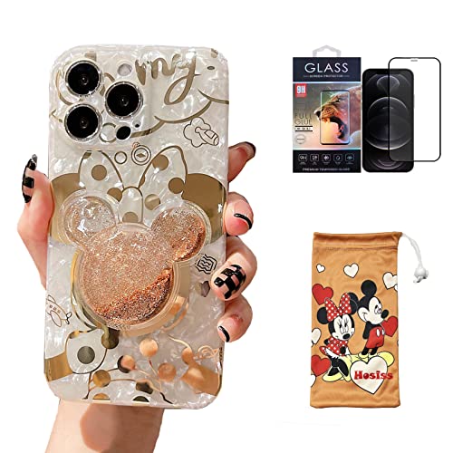 Especificação: Hosiss Capa de desenho animado para iPhone 16 Pro Max de 6,7 polegadas com protetor de tela HD, com alça para celular de areia movediça TPU macio à prova de choque para meninas e mulheres Minnie