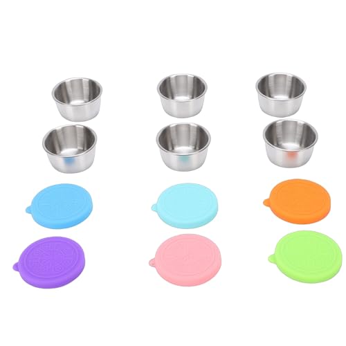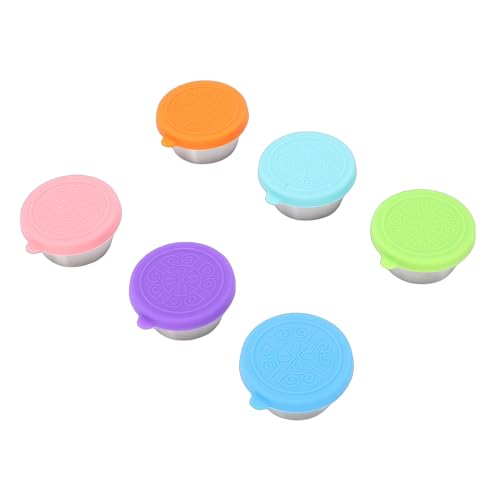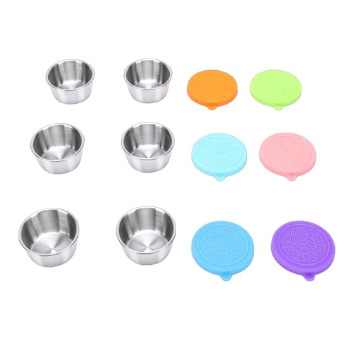 HURRISE 6 Conjuntos de Copos de Molho de Aço Inoxidável de 40ml, Recipientes Reutilizáveis de Molho de Salada Com Tampas, para Lancheira, Piquenique, Viagem, Cozinha, Escritório