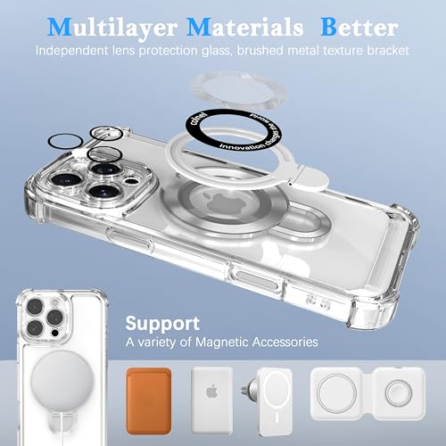 - 【Suporte magnético poderoso】 A capa MagicStand é compatível com MagSafe, apresentando uma estrutura de anel magnético integrada com ímãs de grau 48 N52, fornecendo uma força magnética de 1400 g. O magnetismo mais forte garante carregamento sem fio de 25W rápido e seguro. Experimente a colocação estável do telefone sem se preocupar com tremores ou acessórios caindo. Desfrute de carregamento rápido se você estiver no trabalho ou em movimento