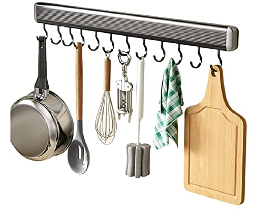 IIPOSAQQ Cabide de pendurar para panela, rack de panela preto para cozinha, parede, trilho de cozinha com ganchos, sem broca, rack de utensílios de cozinha,...