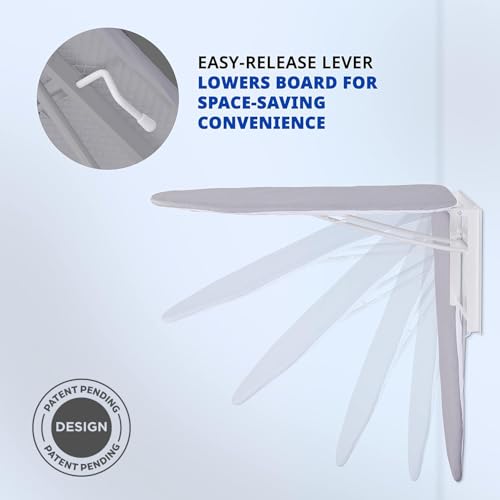 - Vincos gratuitos, recupere seu espaço! | Tábua de passar roupa dobrável é montada verticalmente na parede para incrível conveniência de economia de espaço | Perfeita para passar em casas pequenas, lavanderias, apartamentos de estúdio, trailers e outras áreas apertadas