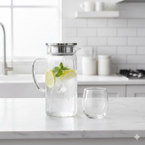 - CAPACIDADE GENEROSA: Jarra de vidro com 1,5 litros de capacidade, ideal para servir água, sucos, refrescos e chás gelados no dia a dia ou para receber convidados com estilo