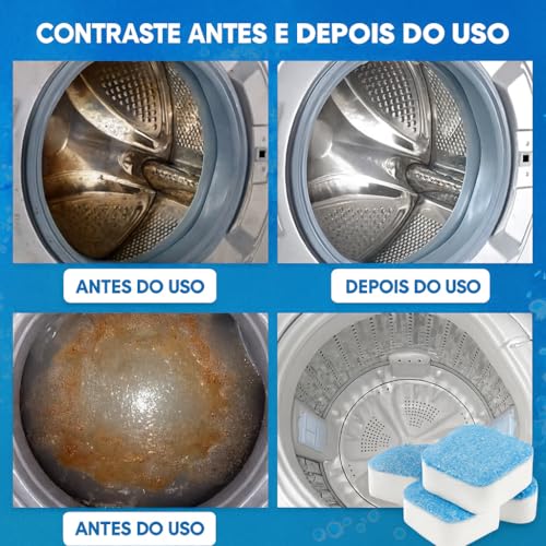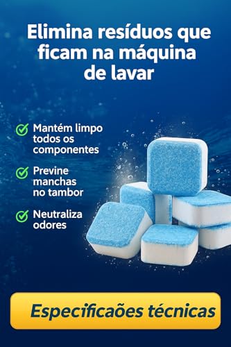 Kit 10 Tabletes Efervescentes Limpador de Máquina de Lavar – Antibacteriano, Desodorizante, Livre de Resíduos