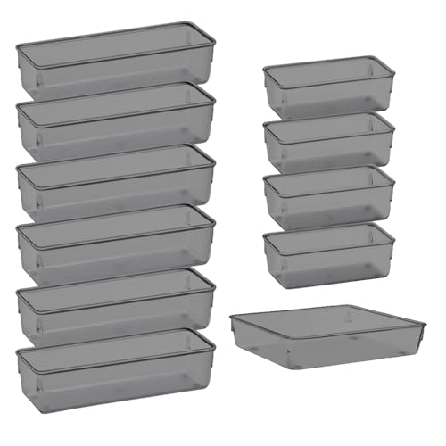 Especificação: Kit 11 Organizador Multiuso Modular Gavetas Acrílico Retan GRANDE(Fume)