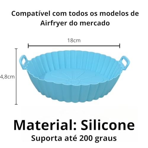 Especificação: Kit 2 Formas de Silicone para Air Fryer, Resistente ao Calor, Antiaderente, com Alça, Reutilizável, Segura para Alimentos, Compatível com Forno e Microondas, Lavável na Lava-Louças