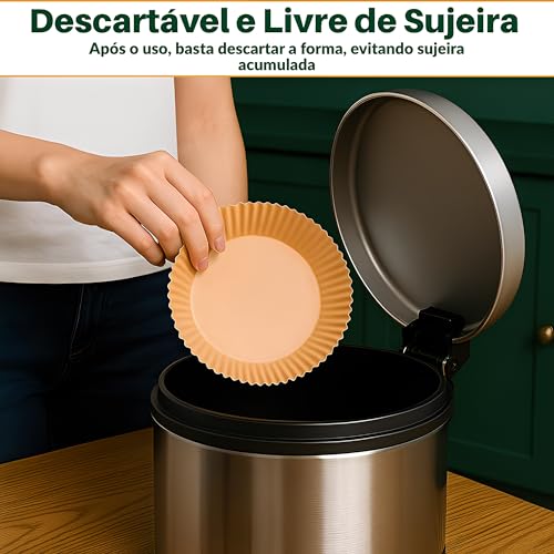 Kit 50 Unidades Forma Descartável para AirFryer 20cm - Forro Protetor para Fritadeira, sem Óleo, Proteção contra Gordura Tamanho Universal Compatível com...