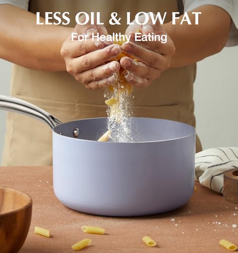 - Panelas multiuso para cozinhar todos os dias – Disponíveis nos tamanhos 1QT, 2QT e 3QT, estas panelas antiaderentes com tampa são perfeitas para molhos, massas, sopas, aveia e todas as suas necessidades diárias de culinária