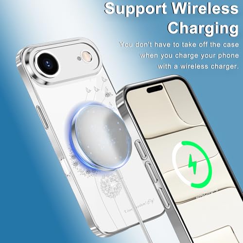 Especificação: Layeri Capa protetora para iPhone Air, proteção total da lente da câmera, transparente, antiamarelamento, flores de dente-de-leão, capa protetora fina à prova de choque para iPhone 17 Air (prata
