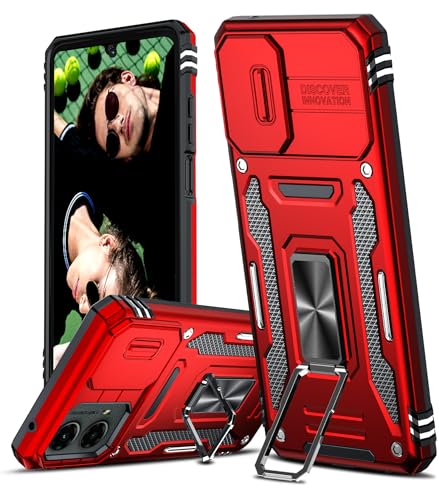 LeYi Capa para Motorola G-5G-2024: Capa para Moto 5G 2024 com capa deslizante para câmera, [grau militar] à prova de choque, suporte magnético para Moto G5G 2024, vermelho