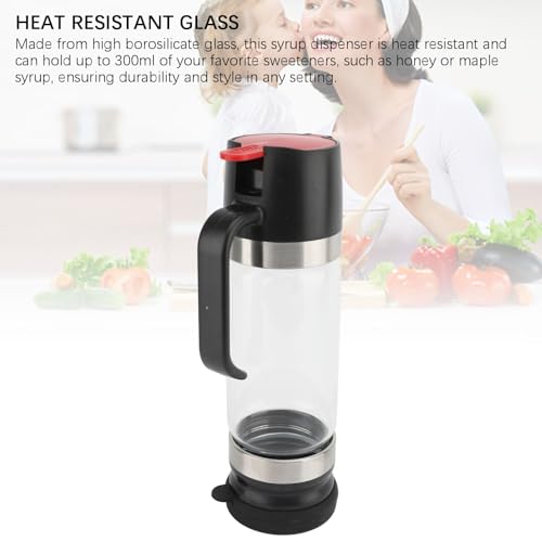 Luocute Dispensador de Xarope de Vidro, Dispensador de Mel, 300ml, Design Sem Gotejamento Com Válvula de Silicone Patenteada para Cozinha, Restaurante, Uso Doméstico (Preta)