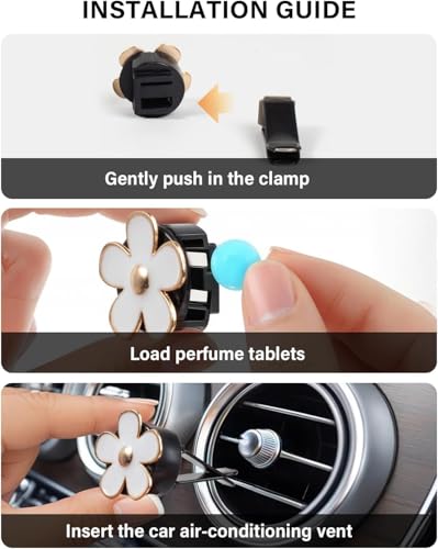 - Tamanho bonito da decoração do carro: projetado para parecer uma margarida fofa, este clipe de ventilação de carro durável vem em cores alegres que iluminam o seu dia enquanto você dirige para o trabalho, faz tarefas ou tem aventuras únicas; prenda esses lindos pingentes de carro para circular um aroma adorável no ar. Ideal para decorações de dia dos namorados em seu carro.