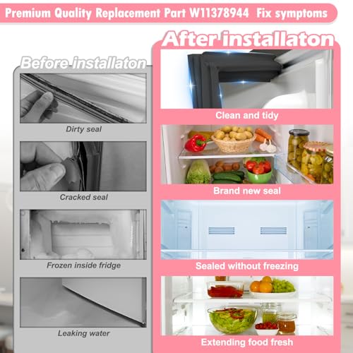 - 【Borracha EPDM de alta qualidade】A vedação de geladeira LXun W11378944 é feita de alta qualidade, LXun W11378944 junta de porta de freezer As peças de vedação são feitas de borracha EPDM de alta qualidade kenmore whirpool geladeira porta francesa é muito durável e resistente. A tira magnética interna Whirlpool W11378944 para vedação de porta de geladeira é espessa e reforçada. Magnético aprimorado de cerca de 815 GS, melhor aderência à junta da porta da geladeira