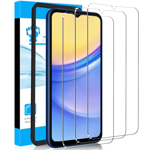 LYWHL Pacote com 3 películas protetoras de tela para Samsung Galaxy A15 5G, película de vidro temperado com acessórios de moldura de fácil instalação, rigidez 9H, antiarranhões, sensível, sem bolhas,