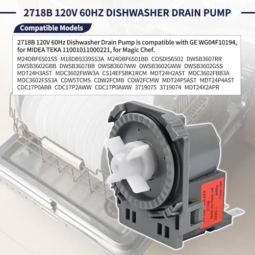 - [Compatível com]: a bomba de drenagem de lava-louças 2718B 120V 60Hz é compatível com GE WG04F10194, para Midea 11001011000221, para Magic Chef.