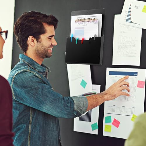 - Grande capacidade: o suporte de tamanho A4 é adequado para colocar produtos de escritório como papel, lápis, réguas, tesouras ou chaves ou itens domésticos como lembretes, recibos, etc. Ideal para guardar acessórios para quadros brancos, escritórios, geladeiras, armários.