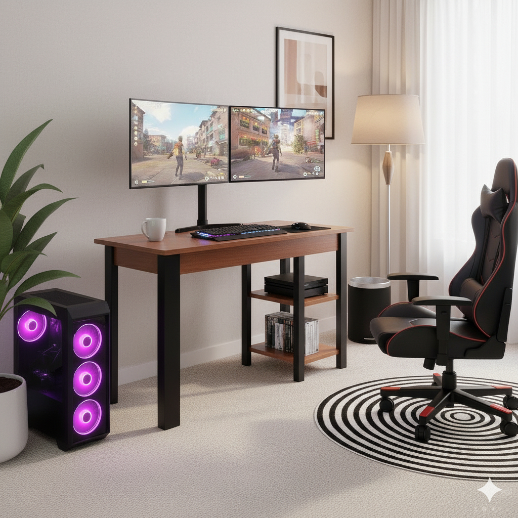Mesa para Estudar e Usar Notebook – Compacta com Prateleiras
