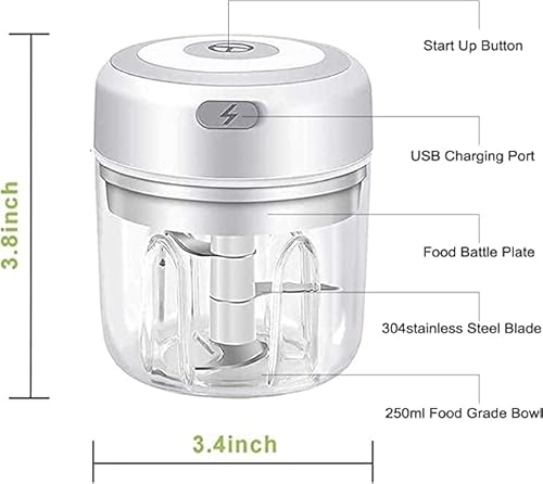 - O mini picador de vegetais é alimentado por USB e o picador de alho pode ser carregado de várias maneiras, como energia móvel, computadores e laptops, etc. Tamanho pequeno, fácil de usar em casa e ao ar livre.