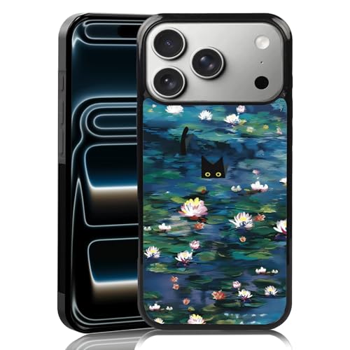 Especificação: MMYAJT Capa de telefone de nenúfares adequada para iPhone 17 Pro Max — Capa protetora de TPU à prova de choque Monet Waterlily Cat Flowers Capa de telefone presente para meninos meninas homens