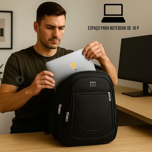 • Carregue tudo o que você precisa: 1. Notebook até 16 ou 17 polegadas 6x Camisas 4x Calças 2x Garrafas ou xícaras E ainda sobra espaço
