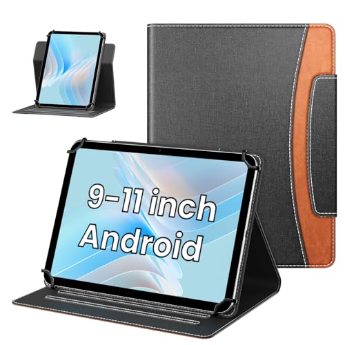 Especificação: MoKo Capa para tablet Android de 10 polegadas com fecho magnético, capa protetora fina com rotação de 360 graus com suporte multiângulo e bolso frontal para todos os tablets de 9 a 11 polegadas, jeans