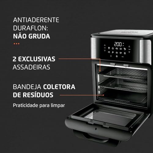 MONDIAL Fritadeira Air Fryer Forno Oven 12L, Preto/Inox, 2000W, 220V – AFON-12L-BI