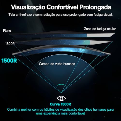 - Tecnologia VA com Contraste 4000:1 e Design Curvo Imersivo – Painel VA avançado oferece pretos profundos e cores vibrantes para uma experiência visual realista em jogos e filmes, com curvatura R1500 que amplia o campo de visão e reduz a fadiga ocular.