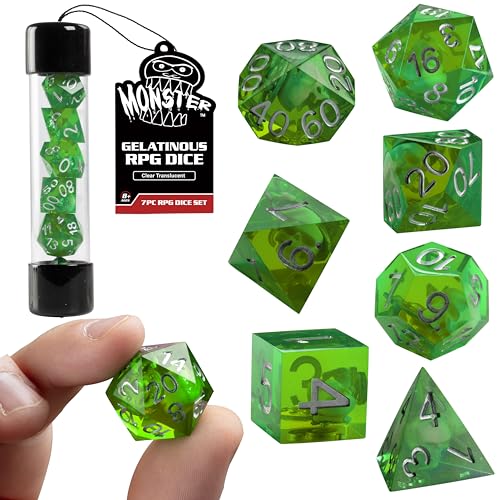 - O menor preço de Monster Gelatinous Premium Dice Set- 7 Green Polyhedral Dice Set w Cubes Victim & Treasure Within- Handmade Premium Resin Infused w Luck- Compatible with D&D Dungeons Dragons MTG Magic & All RPG Games foi obtido em novembro 11, 2025 9:32 am.