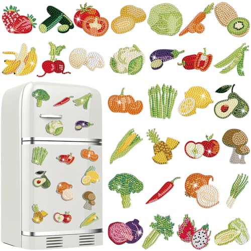 Motipuns 30 peças de ímãs de pintura de arte de diamante vegetal geladeira magnético diamante kits de pintura de arte ímã de geladeira DIY artesanato para adultos iniciantes brinquedo natal decoração