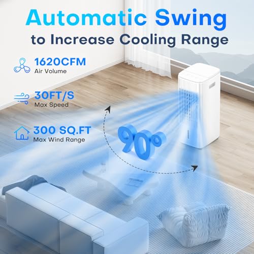 - ️【Saída de ar de 35,5 polegadas e oscilação mais ampla de 90°】O ar condicionado MYICY sem janela para quarto possui uma saída de ar de 35,5 cm com balanço automático de 90° para distribuição de fluxo de ar grande-angular. Oferecendo até 1620 CFM, ele esfria rapidamente o seu espaço com uma área de resfriamento eficaz de 300 pés quadrados. Quando combinado com o seu sistema de ar condicionado existente, garante fluxo de ar uniforme e frescor em todos os cantos, perfeito para criar um ambiente confortável em qualquer cômodo!