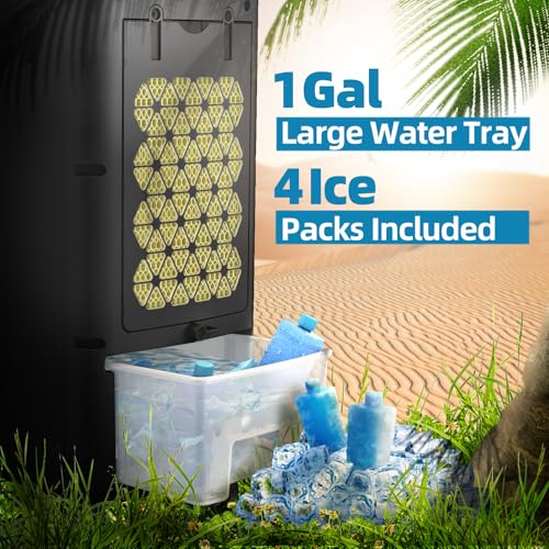 NOMEY Refrigerador de ar evaporativo, 3 em 1 portátil para quarto com 4 modos e 3 velocidades, temporizador de 12 horas, tanque de água desmontável de 1 galão, 4 pacotes de gelo, controlo remoto