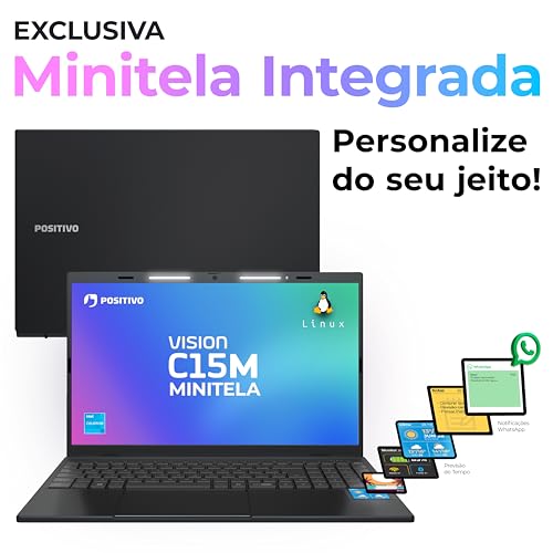 Especificação: Notebook Positivo Vision C15M Intel Celeron N4500 Linux 8GB RAM 128GB eMMC Tela 15″ Full HD IPS Antirreflexo – com Minitela – Cinza